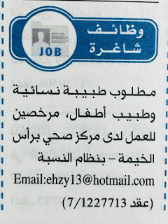 وظائف شاغرة من جريدة الخليج الاماراتية اليوم 01 نوفمبر 2017 .