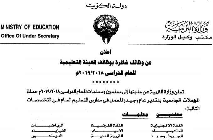 موقع وزارة التربية والتعليم بالكويت وظائف , وزارة التربية الكويت وظائف , اعلان وزارة التربية بالكويت 2018/2019 , وظائف معلمات بالكويت 2018/2019 , وظائف معلمات بالكويت 2019 , مسابقة الكويت للمعلمين 2019 , مدرسين للكويت 2018 , وظائف مدرسات بالكويت , اعلان سفارة الكويت للمدرسين المصريين 2019 ,